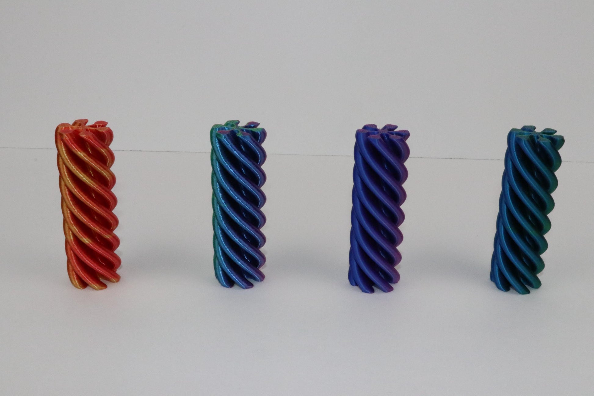 Each sculpture is 3D printed and hand-finished by me in my workspace. I clean up edges and inspect for defects before shipping. Color patterns vary naturally depending on filament flow, so each one is visually unique.