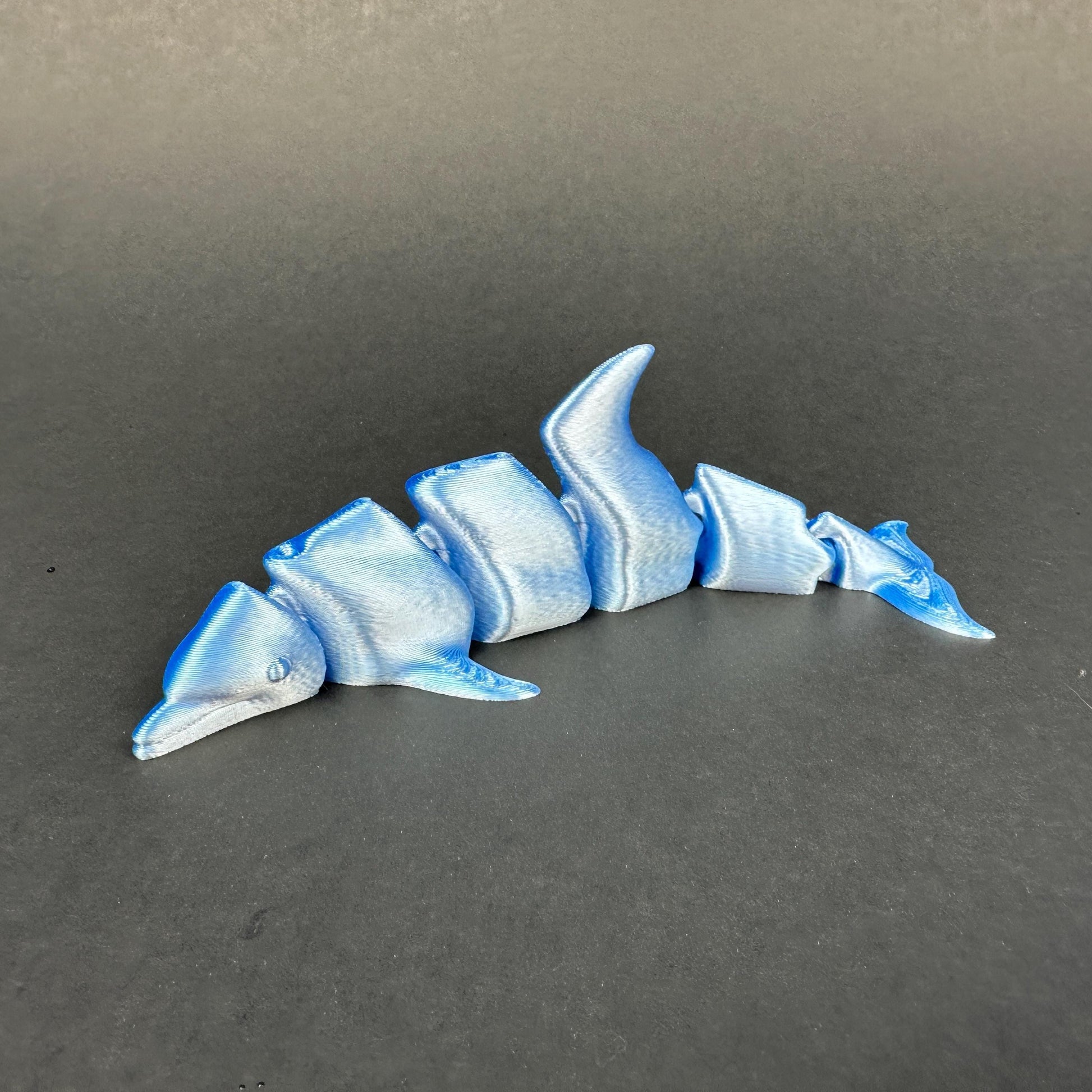 🐬 Bring graceful ocean movement to your decor with this articulated dolphin, 3D printed in vibrant multi-color PLA and hand-finished to smooth key edges. Designed with movable joints for satisfying flexibility, this piece makes a striking and interactive addition to your shelf, desk, or marine-themed space.