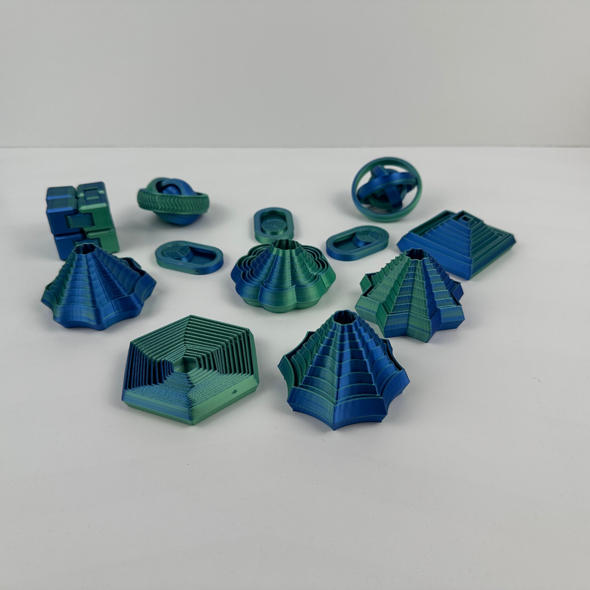 12-Piece Hand-Finished 3D-Printed Fidget Set – Colorful Sensory Fun for All Ages