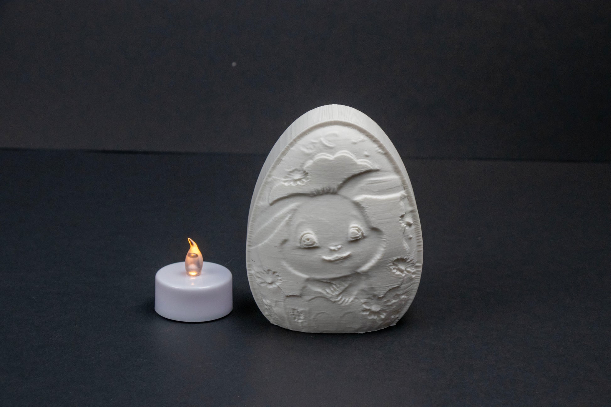 – Intricate bunny-in-egg relief design