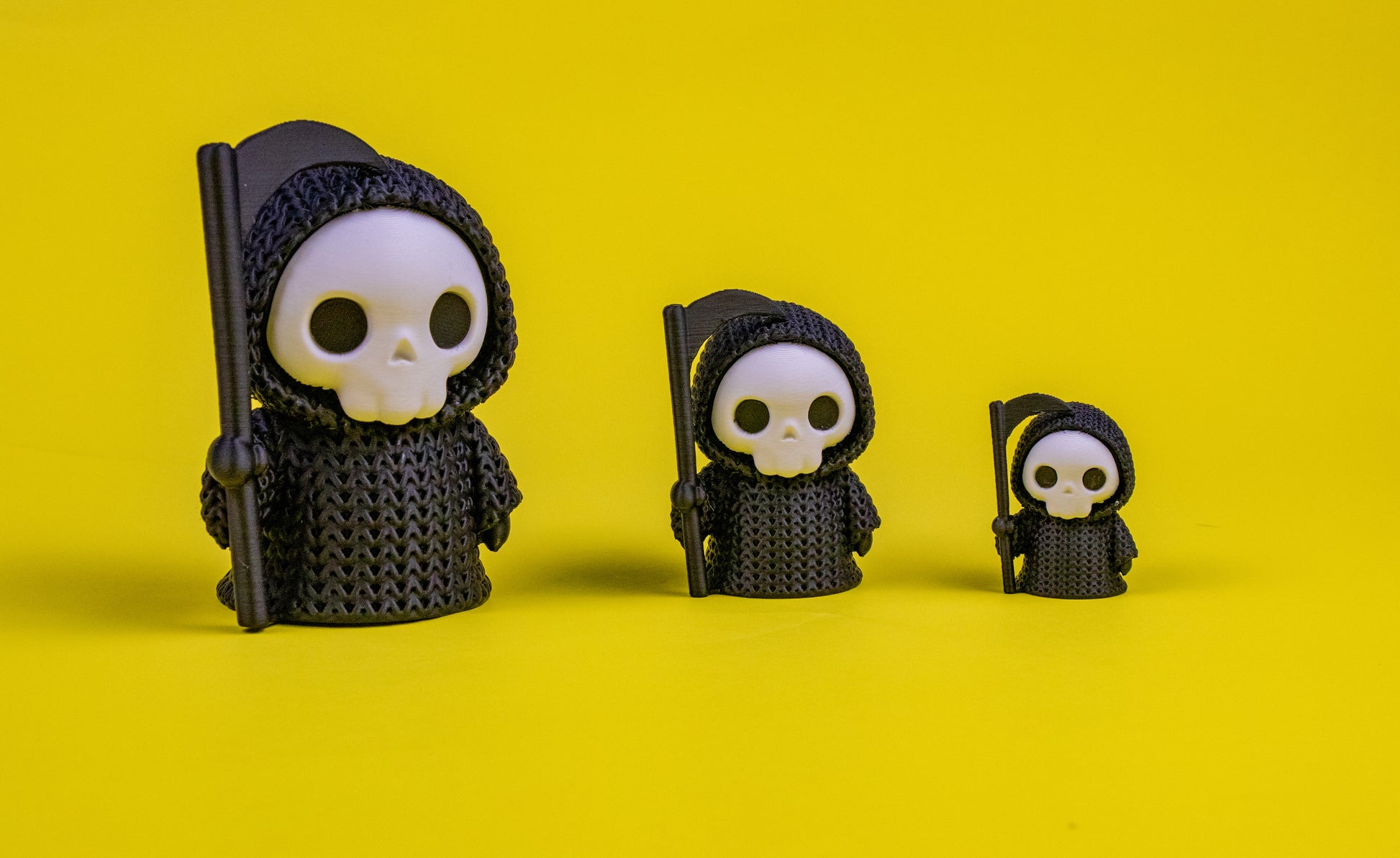 Each Cozy Reaper is 3D printed in premium PLA and inspected by hand. The knit-like texture gives it a handmade look while maintaining the precision and quality of 3D printing. Every piece is one-of-a-kind thanks to filament variations.