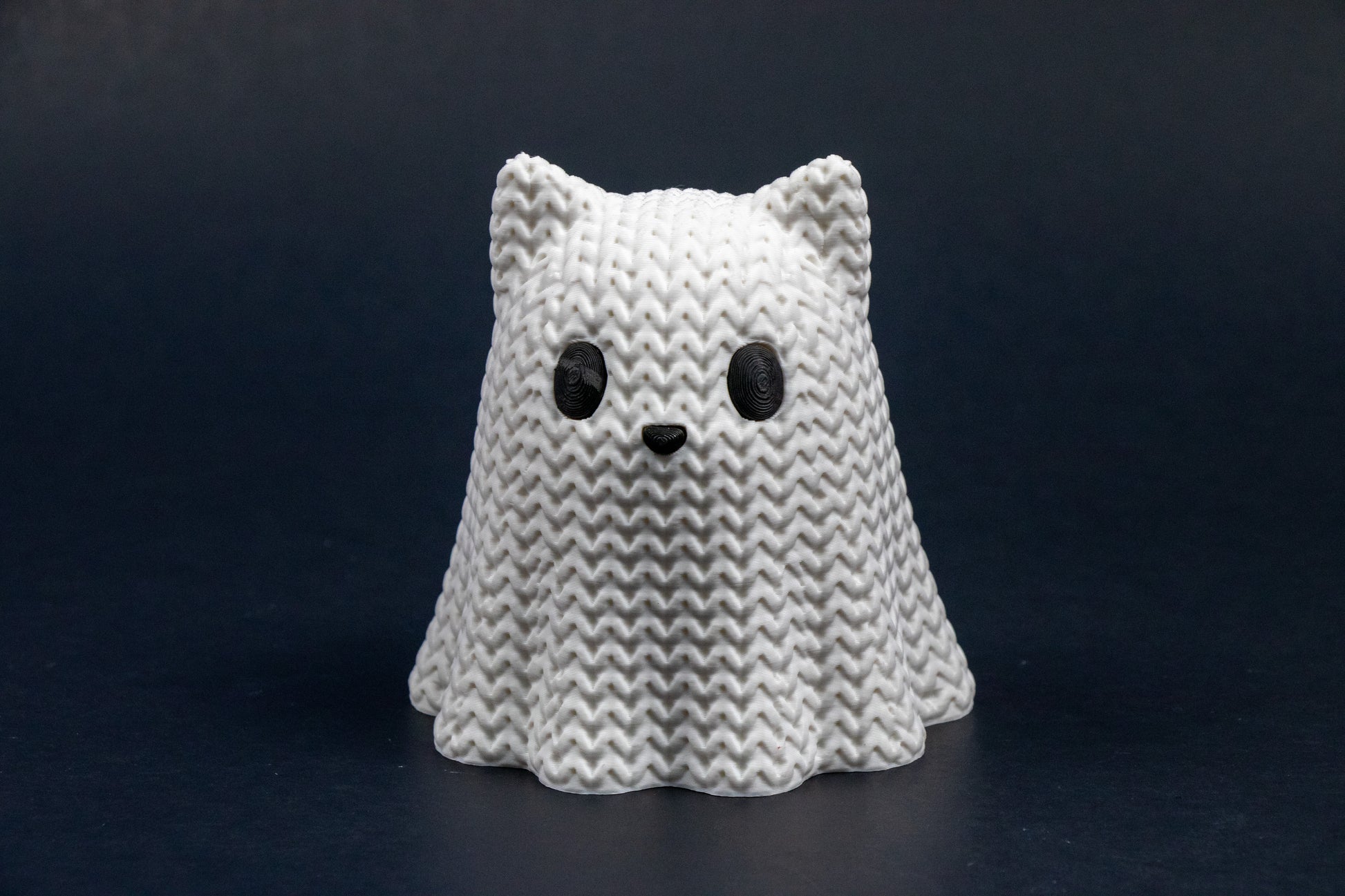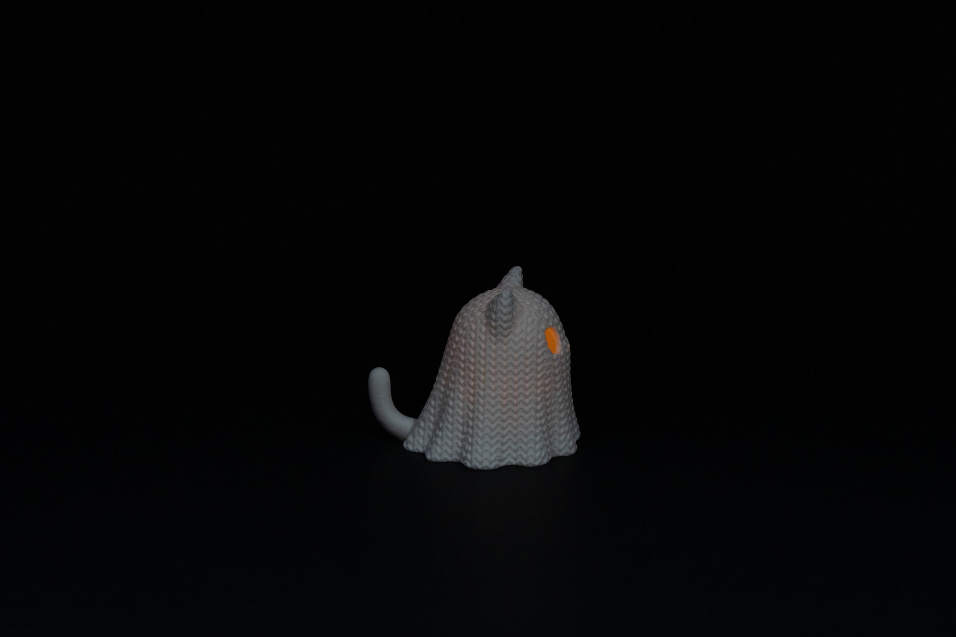 Each Ghost Cat is made using high-quality PLA and carefully cleaned after printing to remove any rough edges or print artifacts. The textured knit-like surface gives a handmade look while remaining solid and long-lasting.