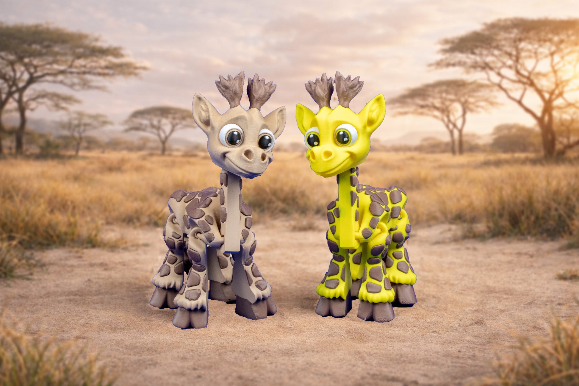 Each giraffe is 3D printed in durable PLA and carefully inspected by hand. I remove imperfections and smooth any sharp edges to ensure a clean finish. Every giraffe is slightly unique due to filament variations.