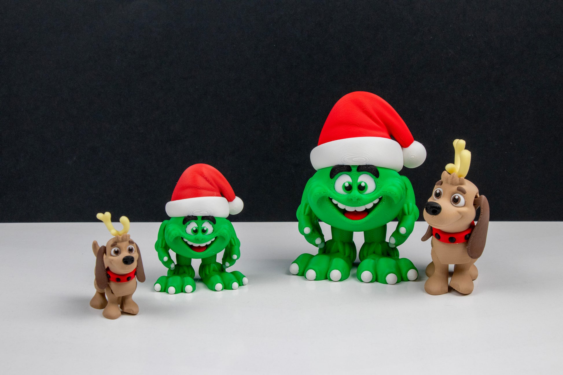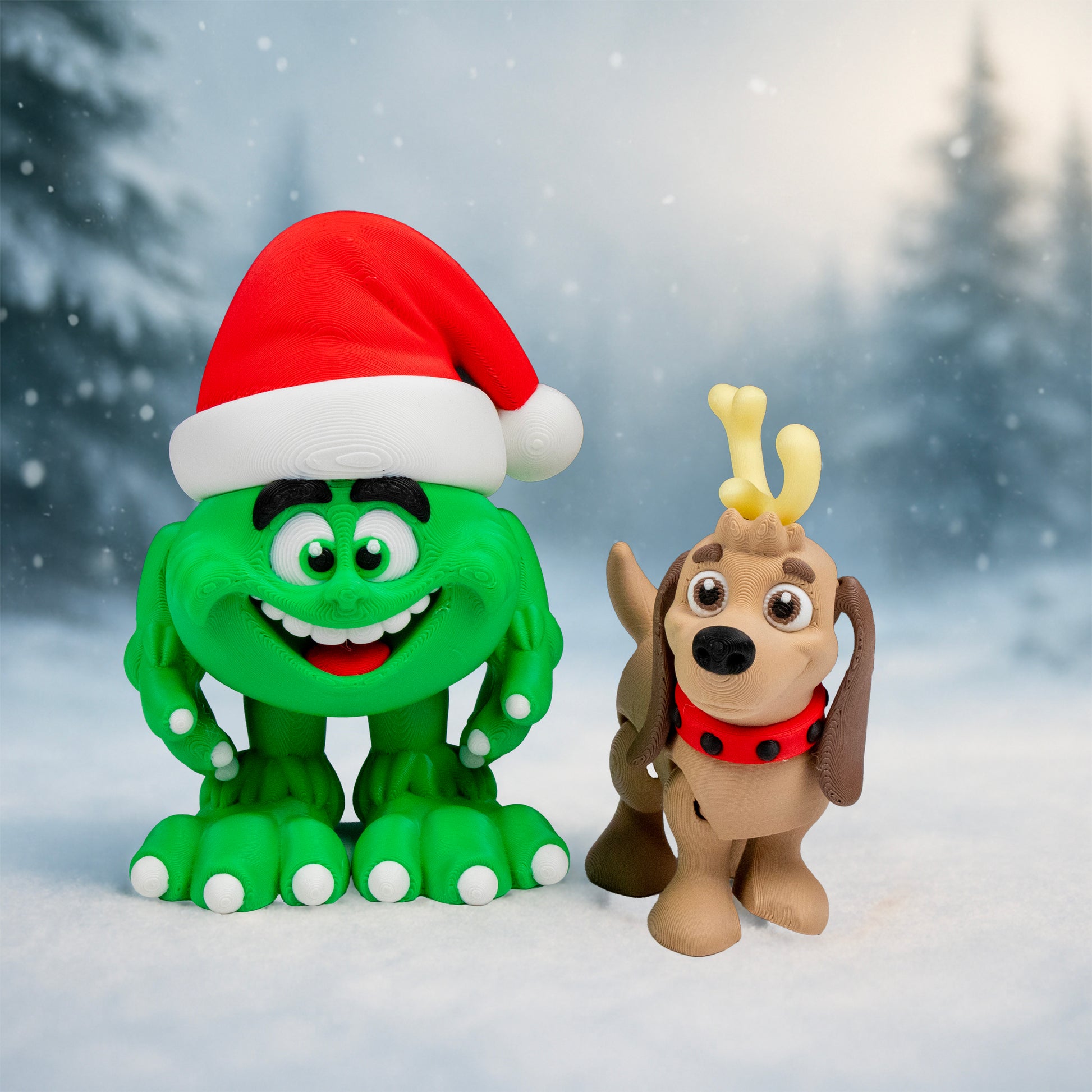 This festive pair is ready to bring both mischief and charm to your winter décor. The Green Holiday Menace brings bold seasonal attitude, while Max the Christmas Dog adds heartwarming cheer. Together, they create an eye-catching holiday scene perfect for desks, shelves, and gift displays.